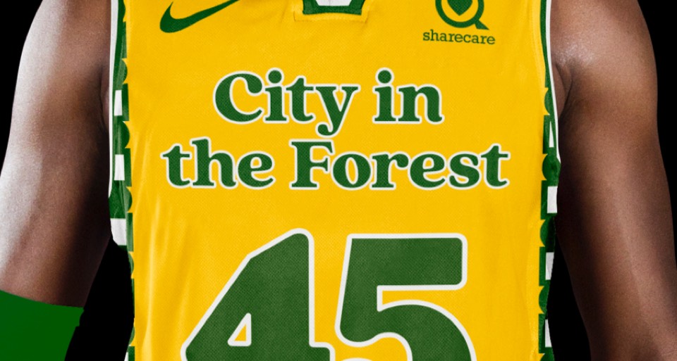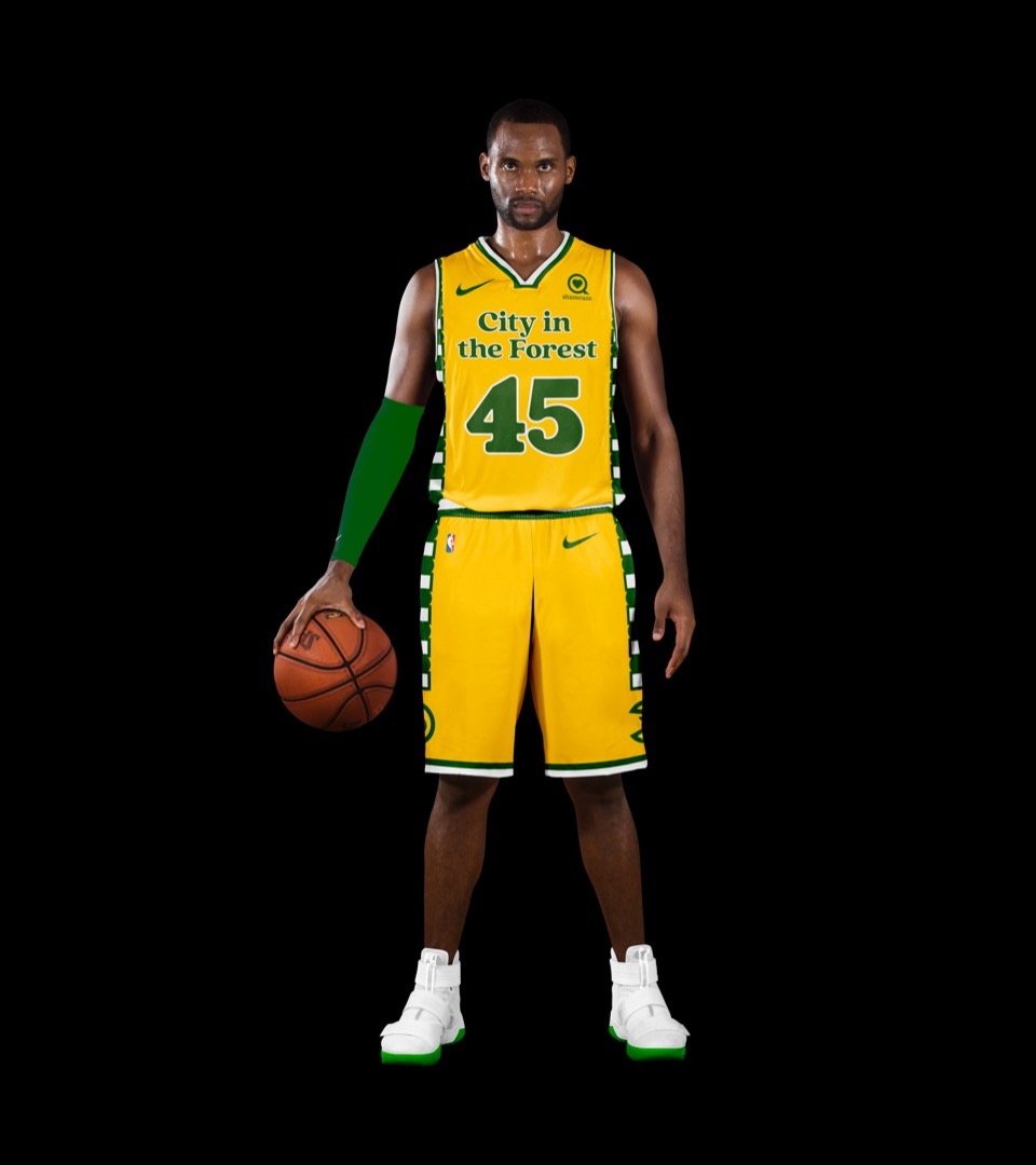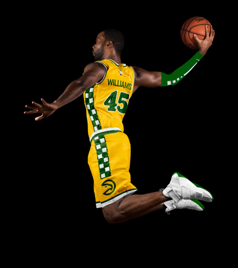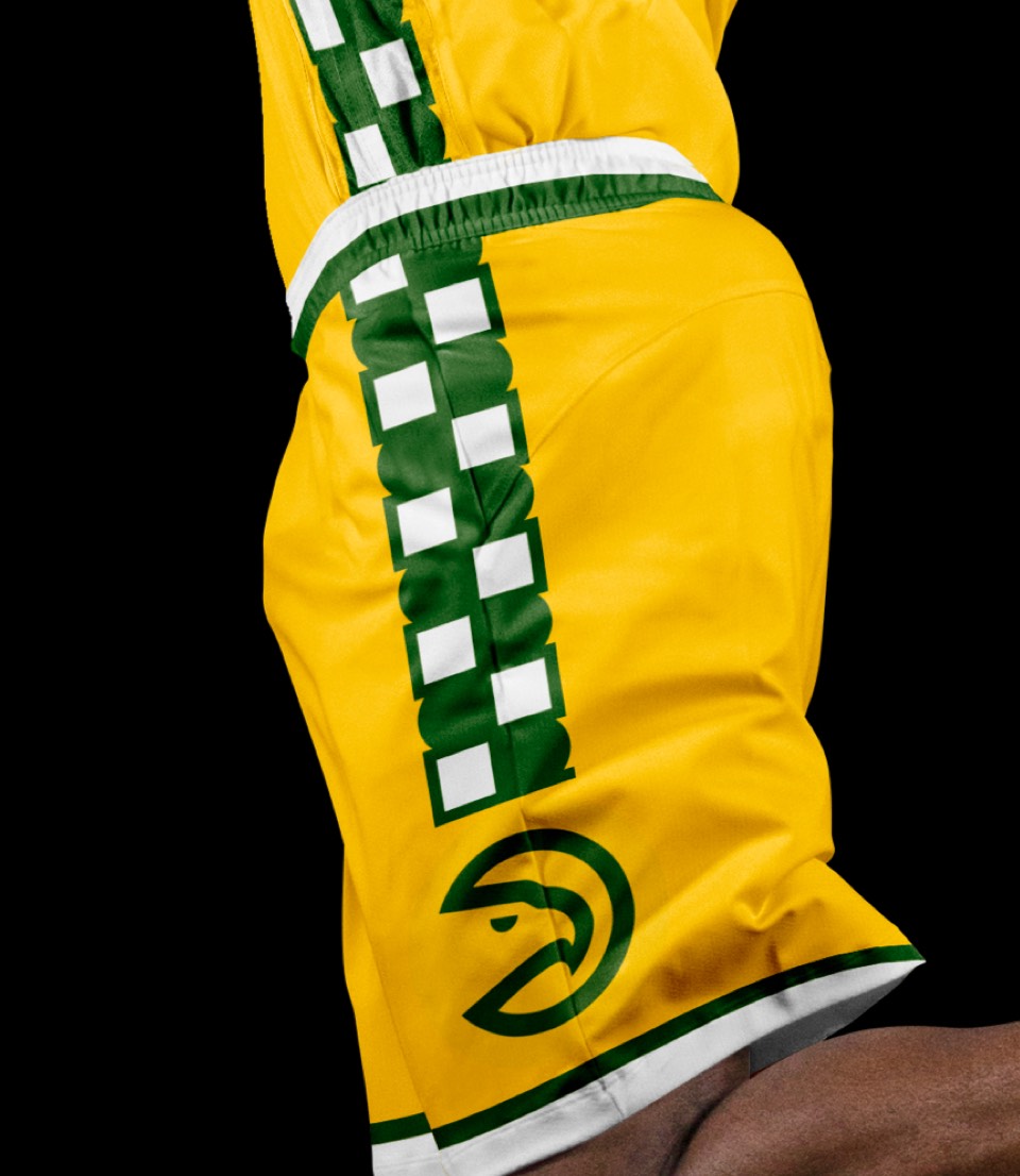 Atlanta is known as the "City in the Forest" for how much tree coverage it has. We created an abstract pattern of trees and buildings in green, with the Hawks yellow as the primary background color.