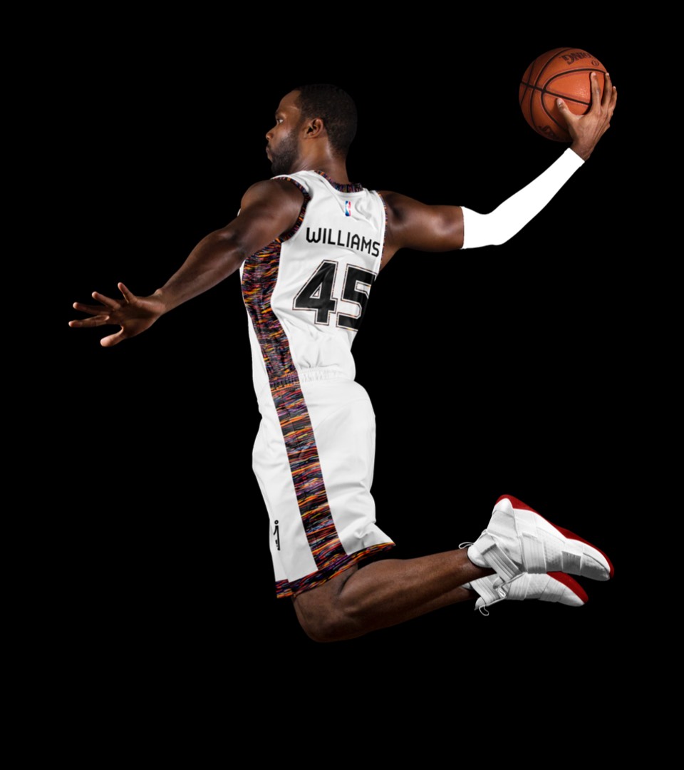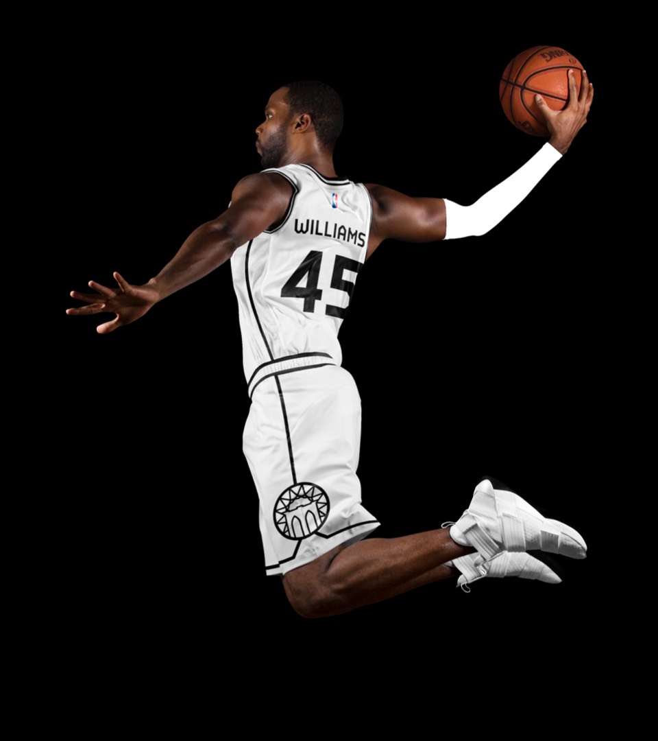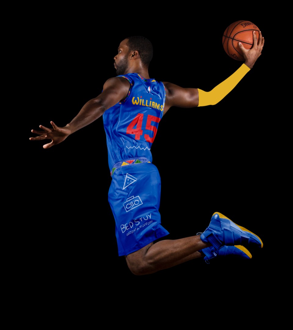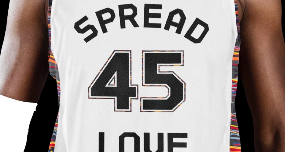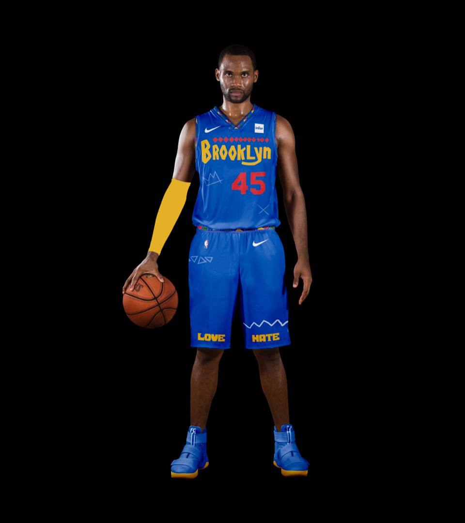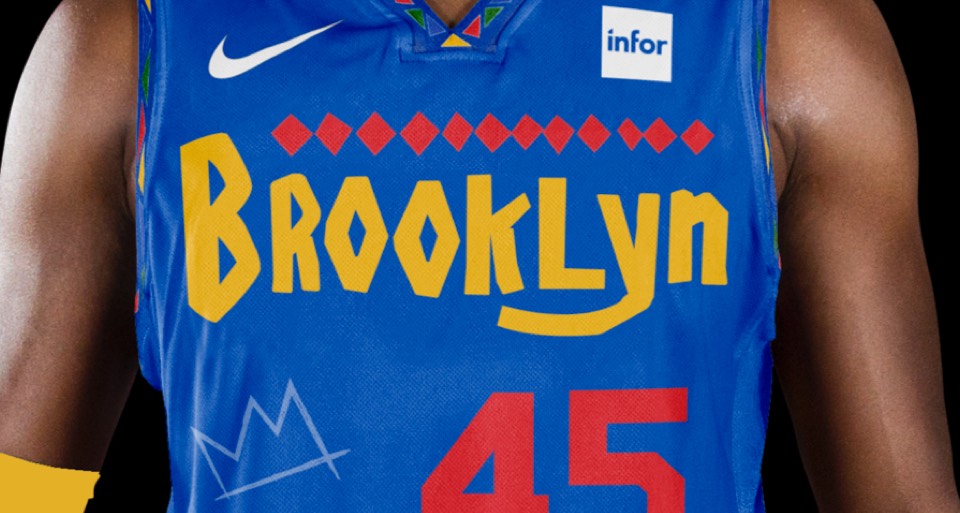 Is "Do the Right Thing" the most iconic Brooklyn movie? We've incorporated the type featured in the movie, the patterns featured in the title sequence and sidewalk chalk art. The jersey numbers are in the same typeface as the Jackie Robinson Dodgers jersey worn by Mookie throughout the film. This uniform also acts as an official olive branch to longtime Knicks fan and Brooklyn native Spike Lee.