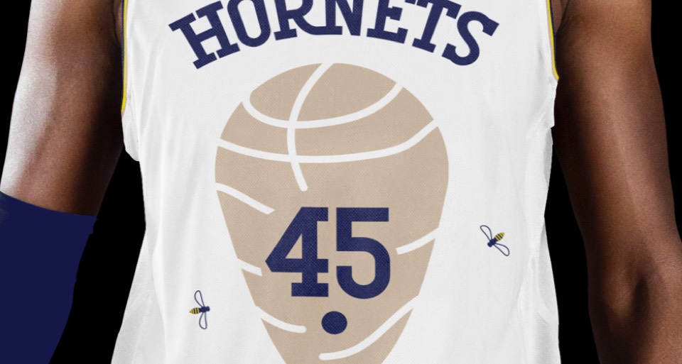 The Hornets nickname isn't about an insect, it's in reference to Lord Cornwallis describing the city as "a veritable hornets nest of rebellion" during the Revolutionary War. We didn't want to go as far as representing that in the primary logo, but the statement uniform was a chance to pay tribute, with a design inspired by the first flag of North Carolina.