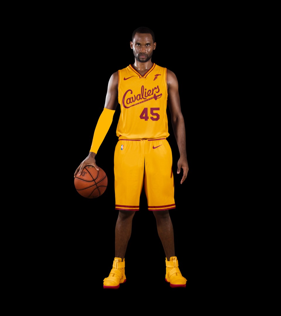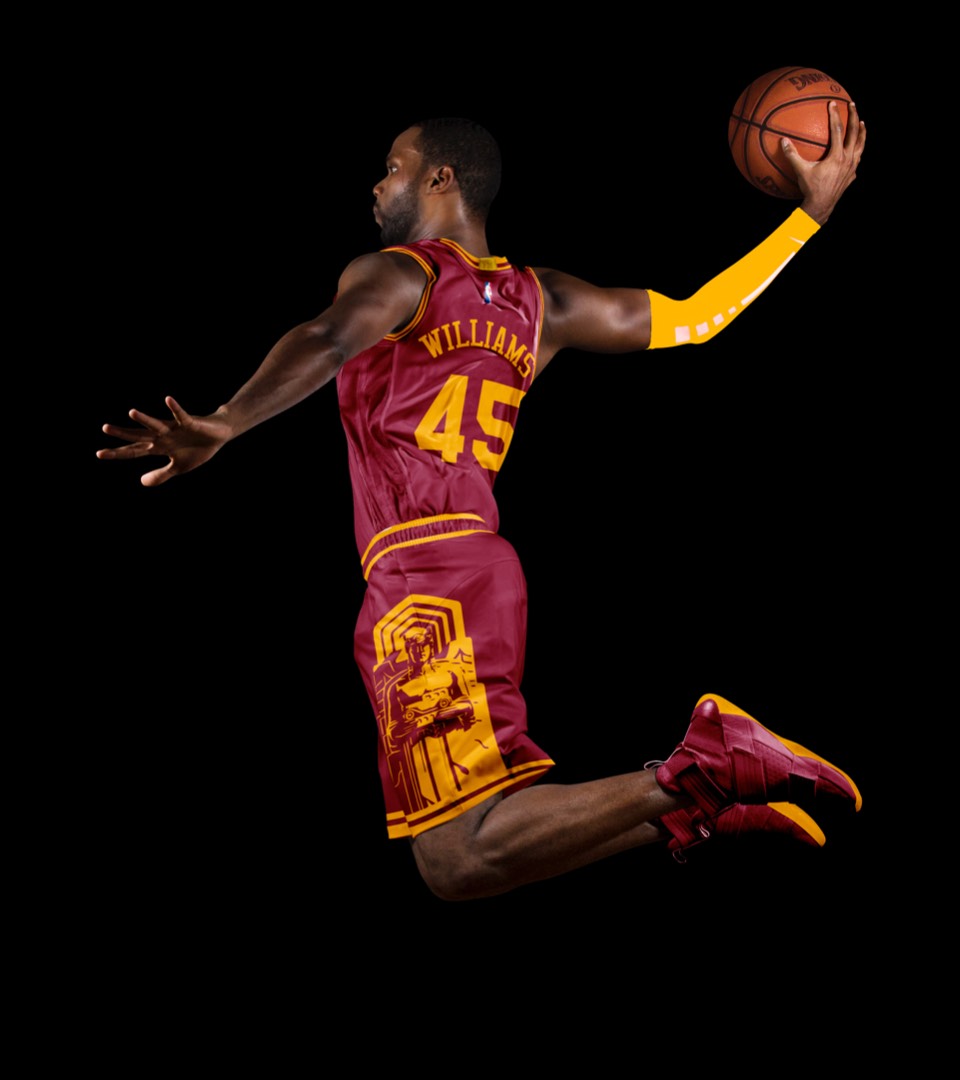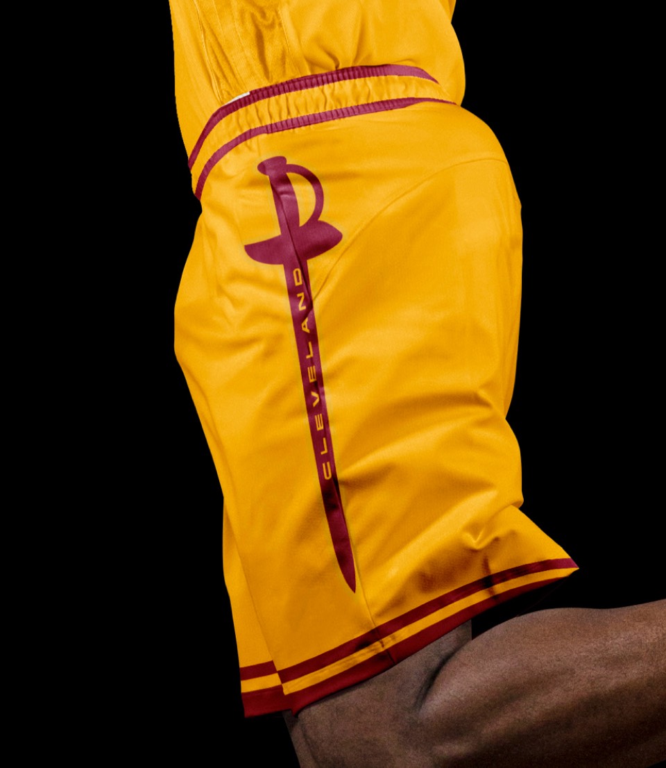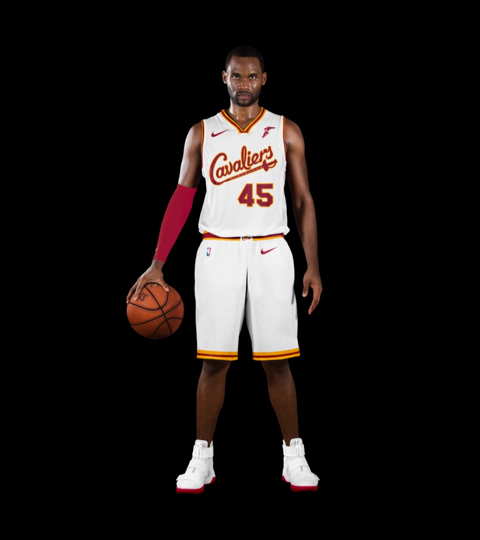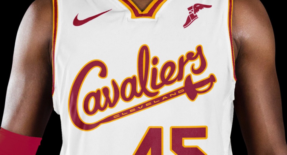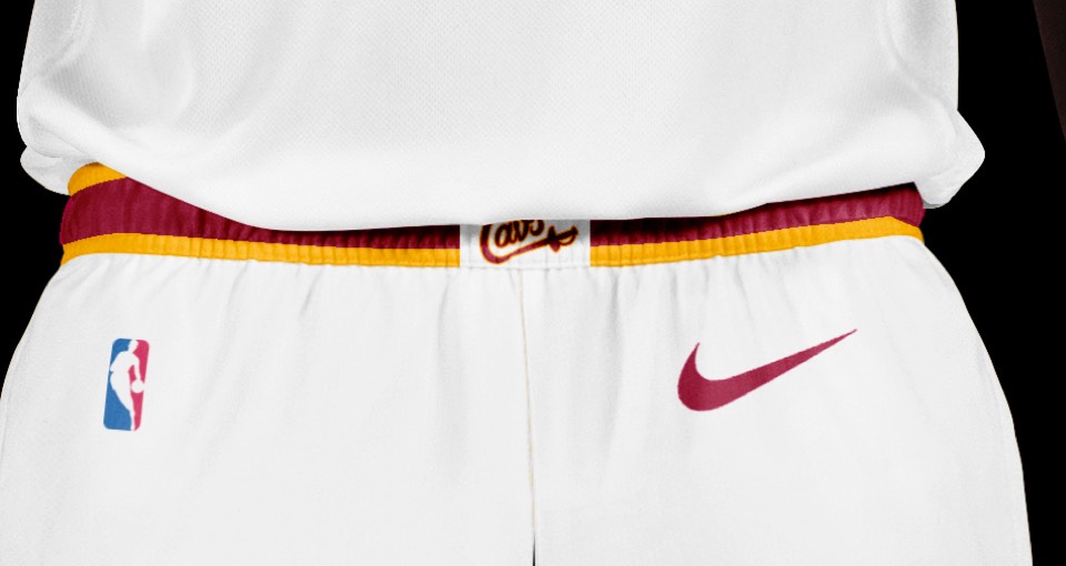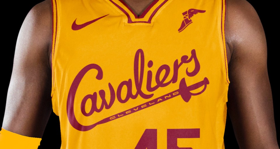 As a nod to the Cavs' original uniforms, we went gold with red lettering, no stroke. Both association and icon uniforms say "Cleveland Cavaliers" so no need to change layout or hierarchy.