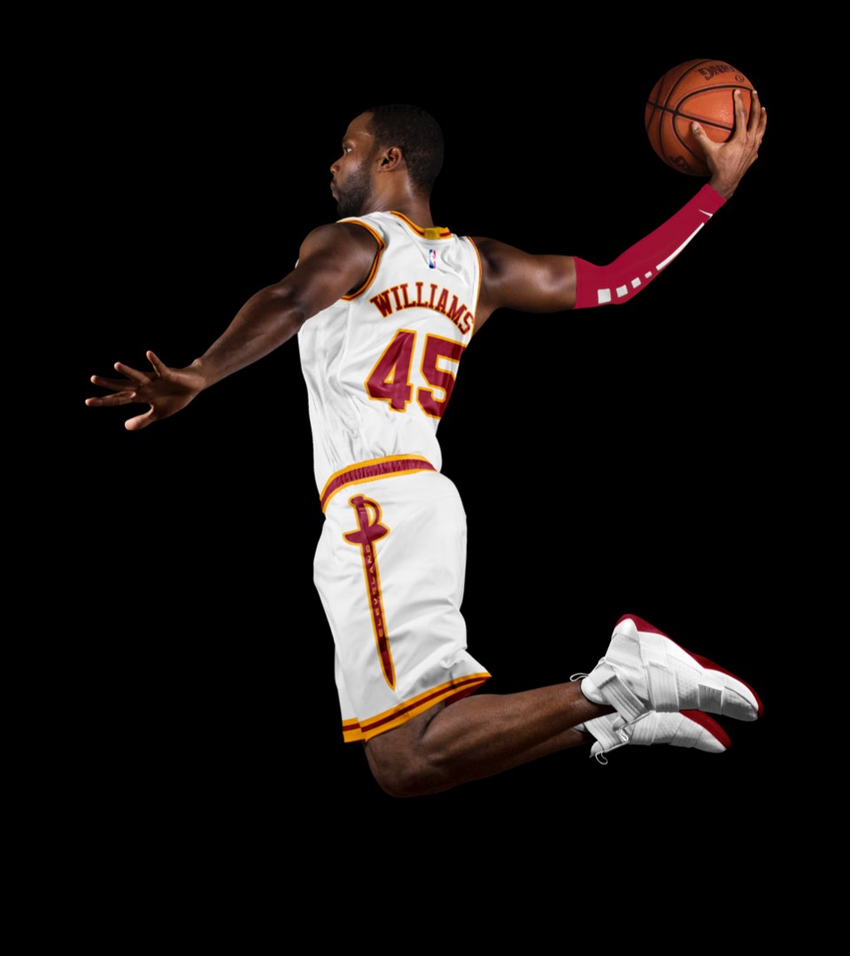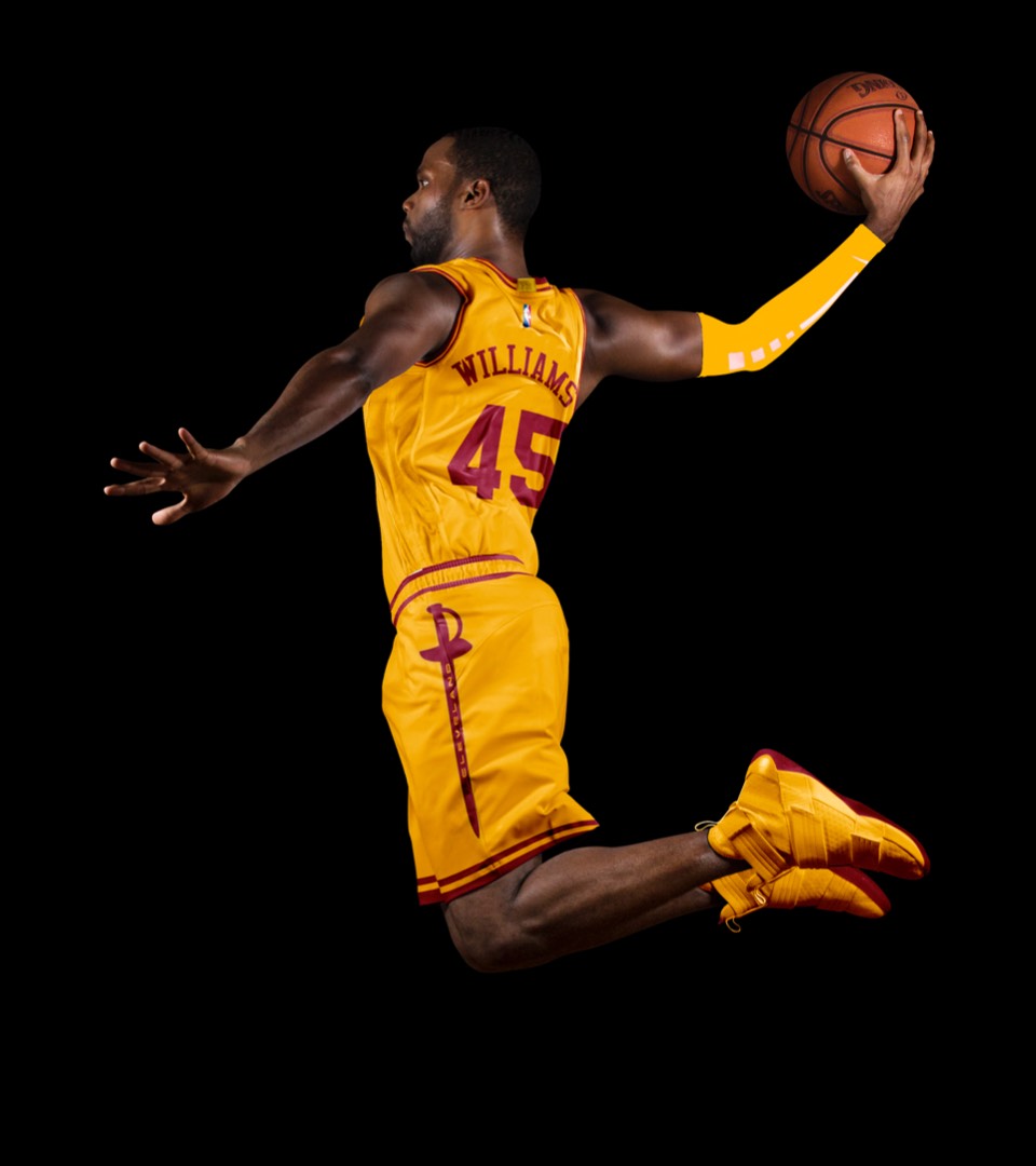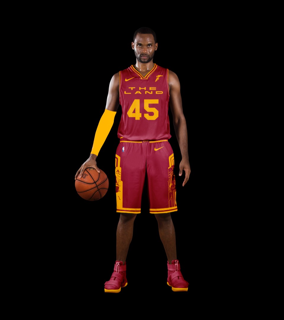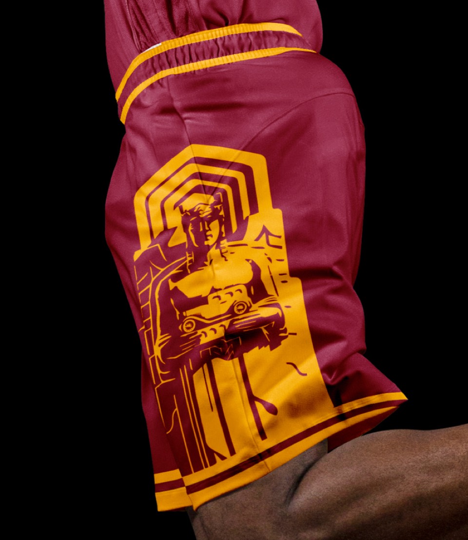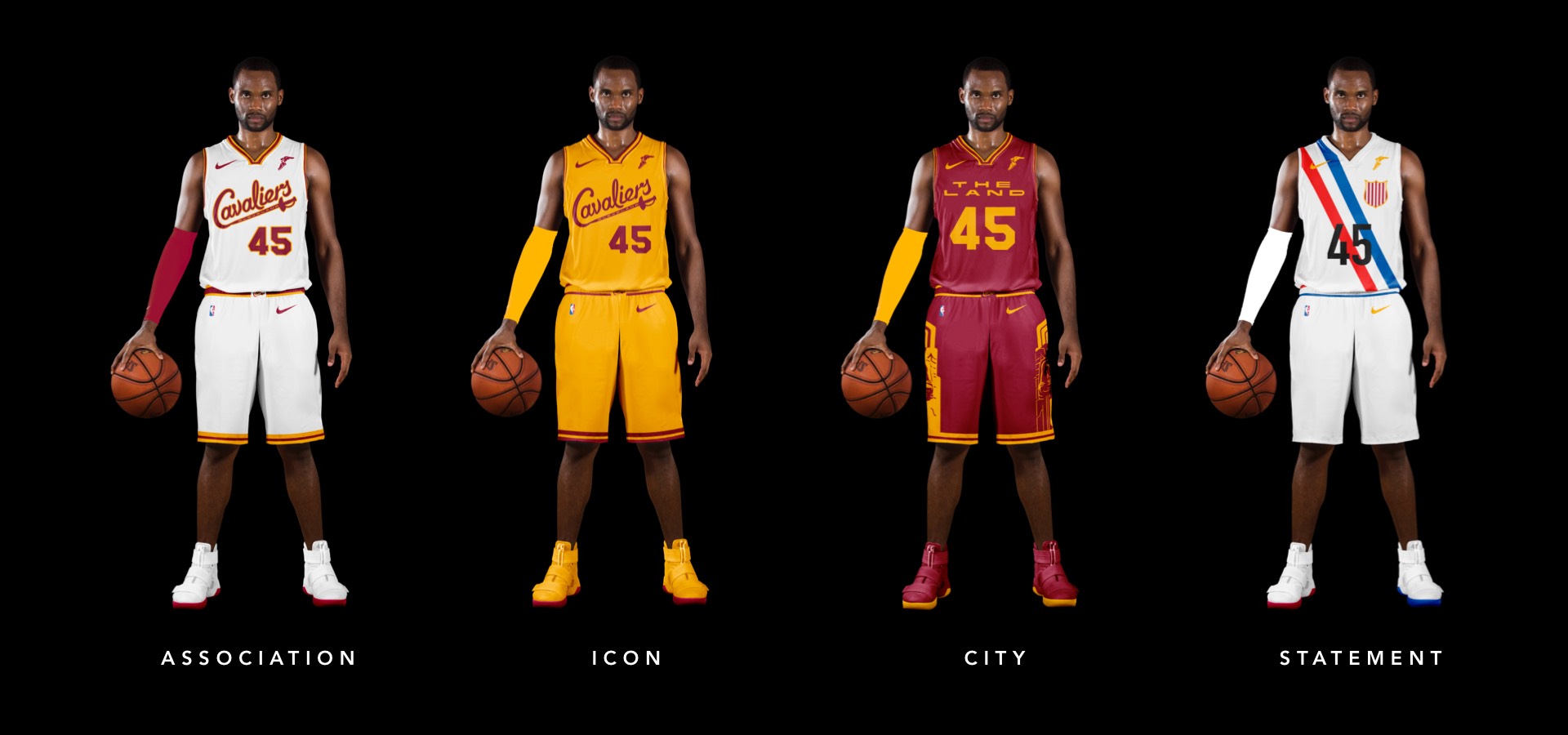 As a nod to the Cavs' original uniforms, we went gold with red lettering, no stroke. Both association and icon uniforms say "Cleveland Cavaliers" so no need to change layout or hierarchy.