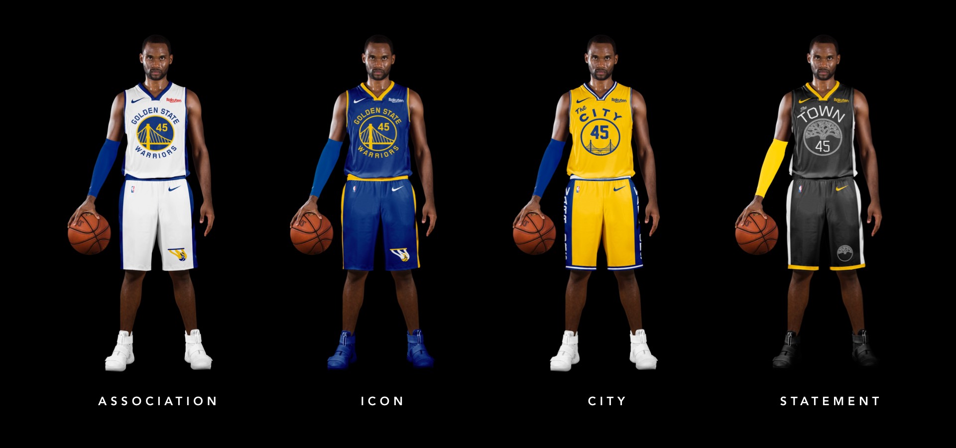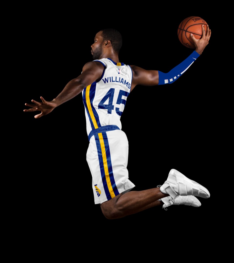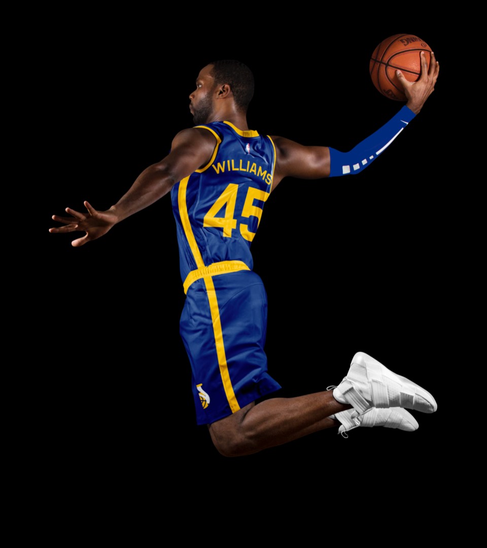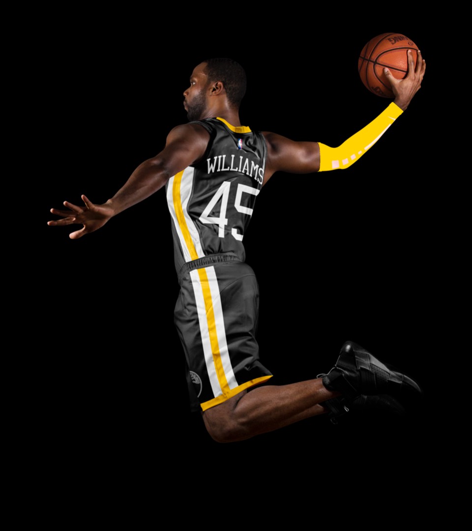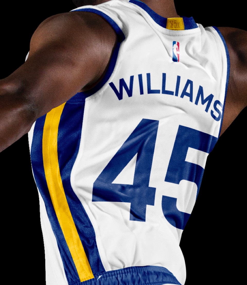 The recent THE TOWN city jersey was a perfect complement to the hardwood classic and it feels right to rep both Oakland and San Francisco here. We went with the yellow trim (superior to the blue version) and simplified the side stripes to match the other uniforms.