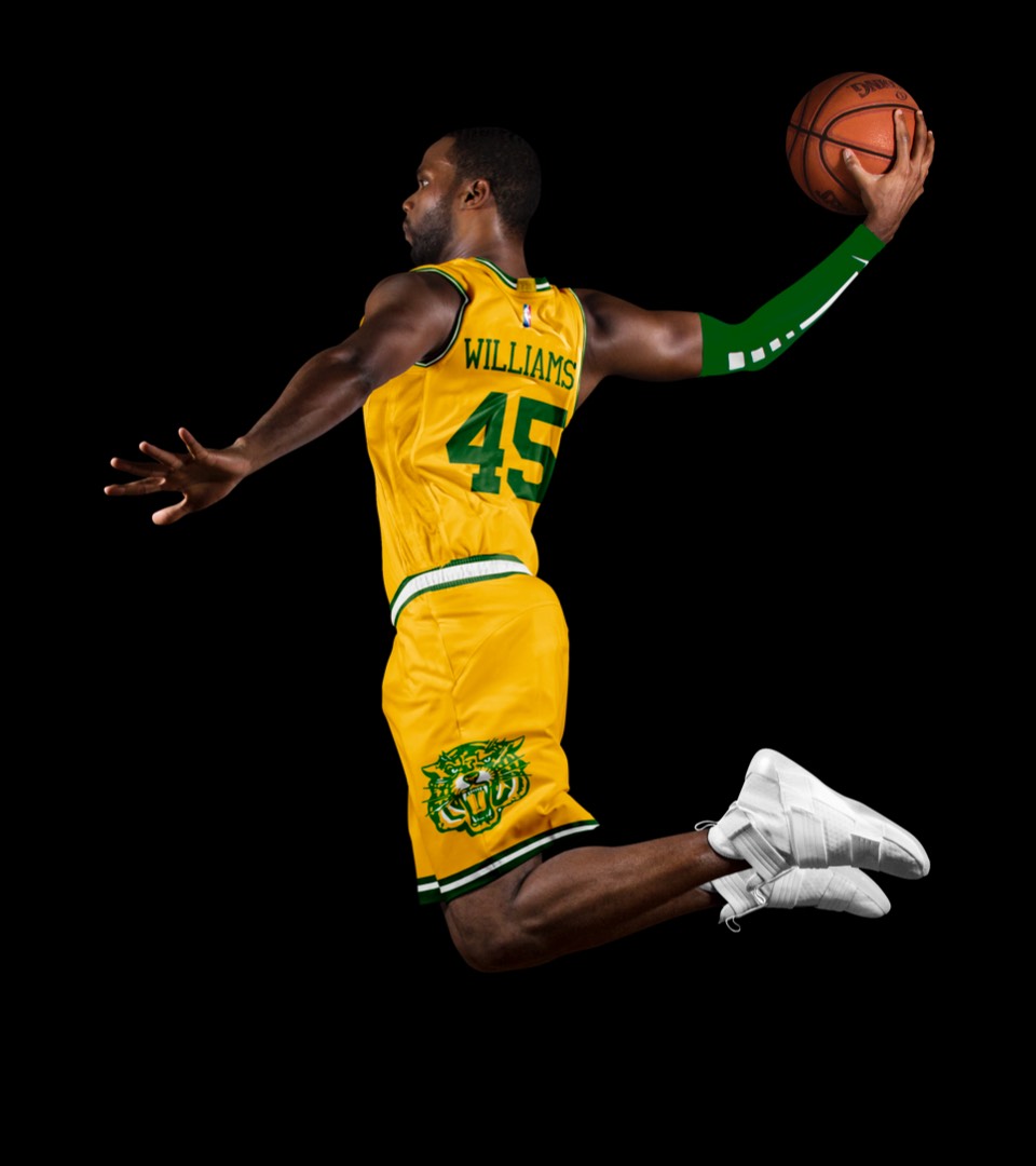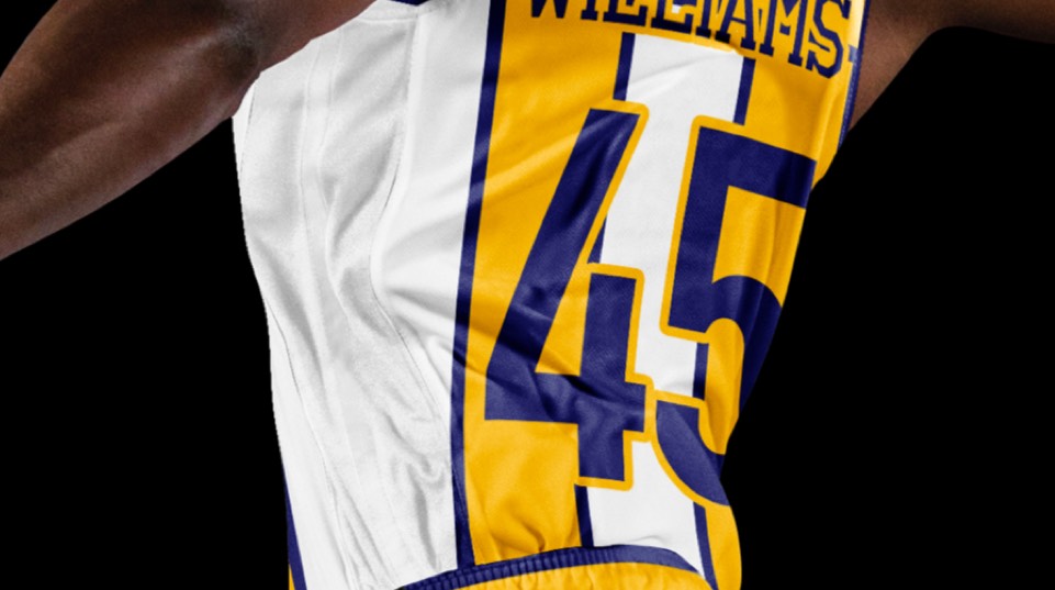 A rare case of the icon and association jerseys getting not only inverse colorways, but new "paint jobs" (feels appropriate for the Indy car theme). The Icon uniform gets a vertical racing stripe down the sides, and a player name that wraps around the number decal.