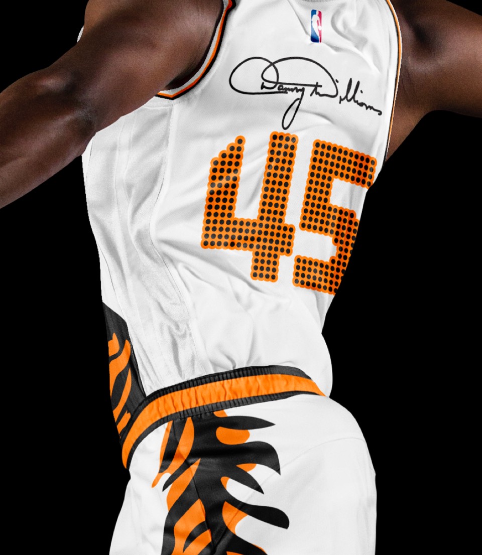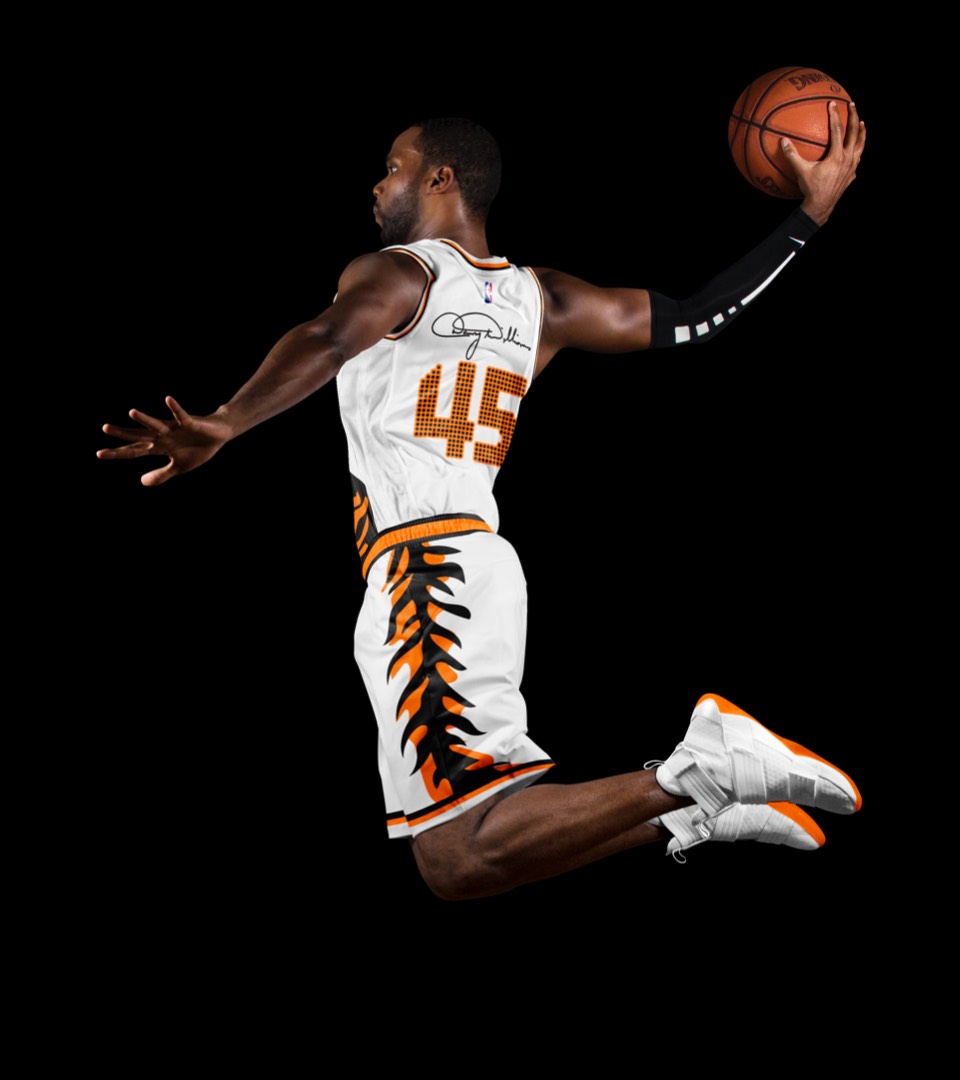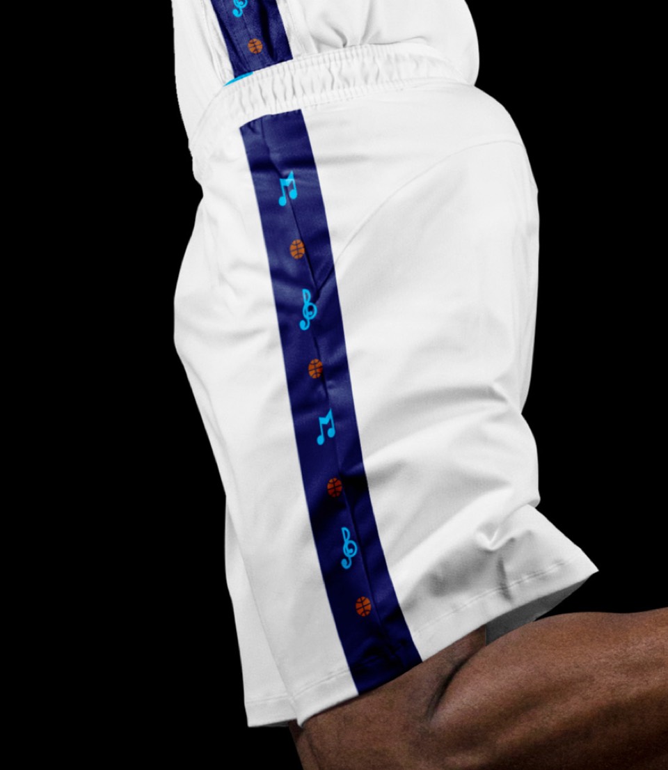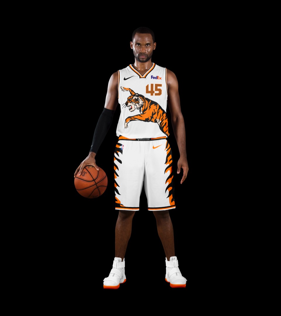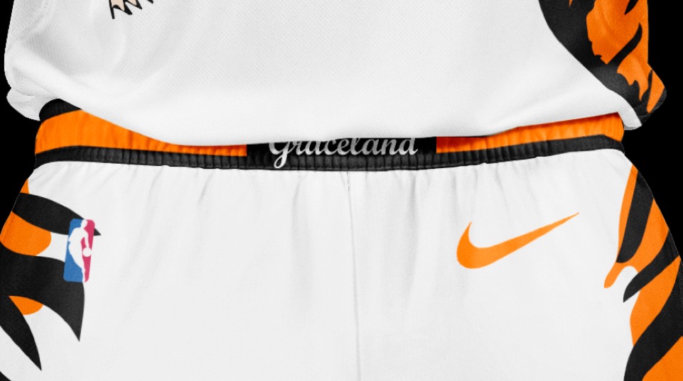 As if all the above moves weren't bold enough, we're dialing it way up with a freaking "Graceland" uniform. Inspired by Elvis' famous tiger jumpsuit, it features the lunging tiger on the front, tiger stripe shorts with a GRACELAND belt buckle, Vegas lights numbering (where he debuted this jumpsuit) and each player's last name as their signature.