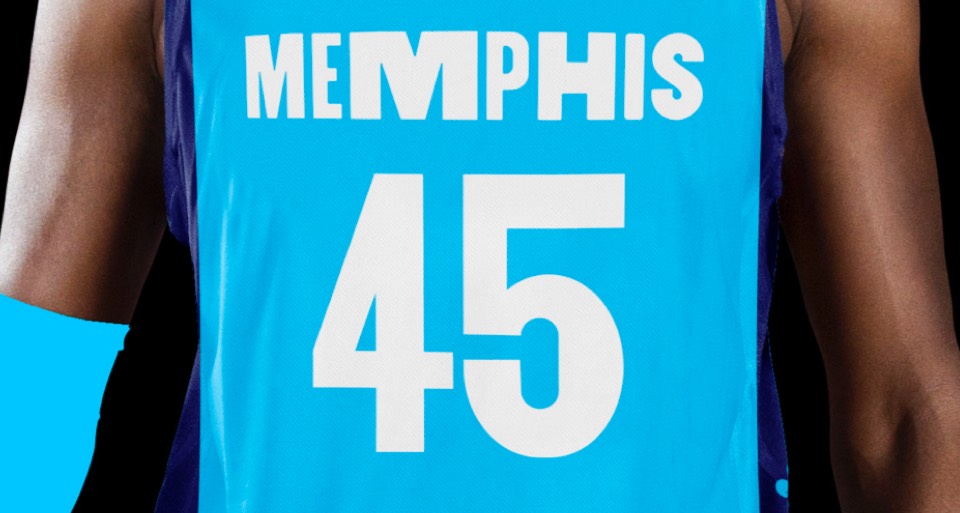 We didn't initially think a re-name was necessary, opting to try to shift the meaning of "Grizzlies" to a woodcut drawing of a mountaineer. The response from the Grindhouse was swift and harsh, but in a very helpful way—we got some very thoughtful comments from fans saying they would be more receptive to a re-name than we thought. The obvious choice from what we were reading was the Memphis Blues, especially given that we were changing the name of the Utah Jazz; the "team named after a musical genre" was wide open! We created a swooping wordmark starting with a treble clef "B", accenting with a more vibrant "Beal Street Blue". The lettering is drawn from a collection of old woodcut show print letterforms as a nod to the music scene.