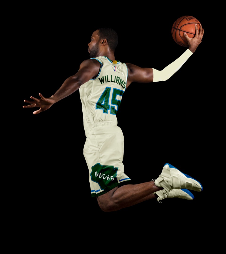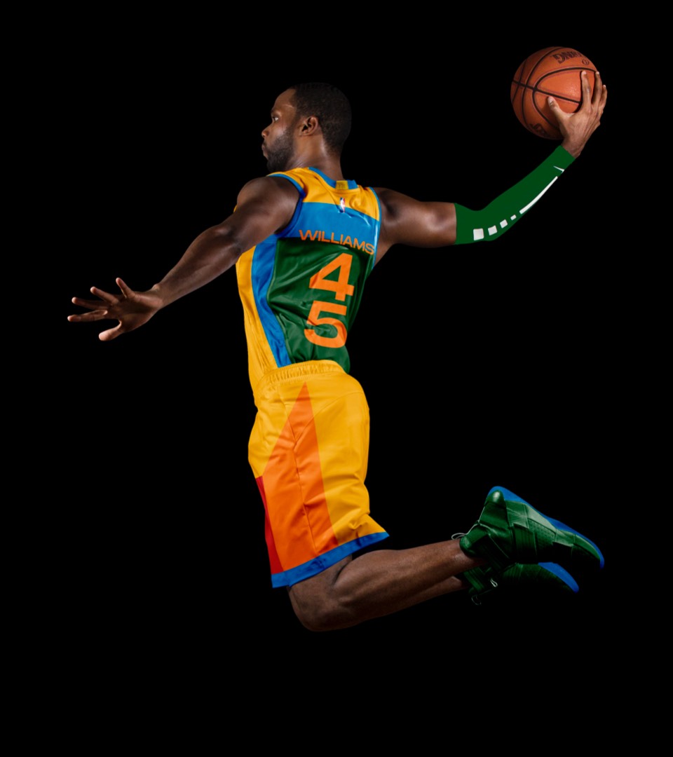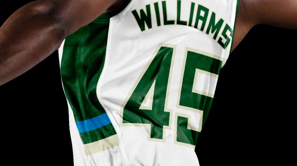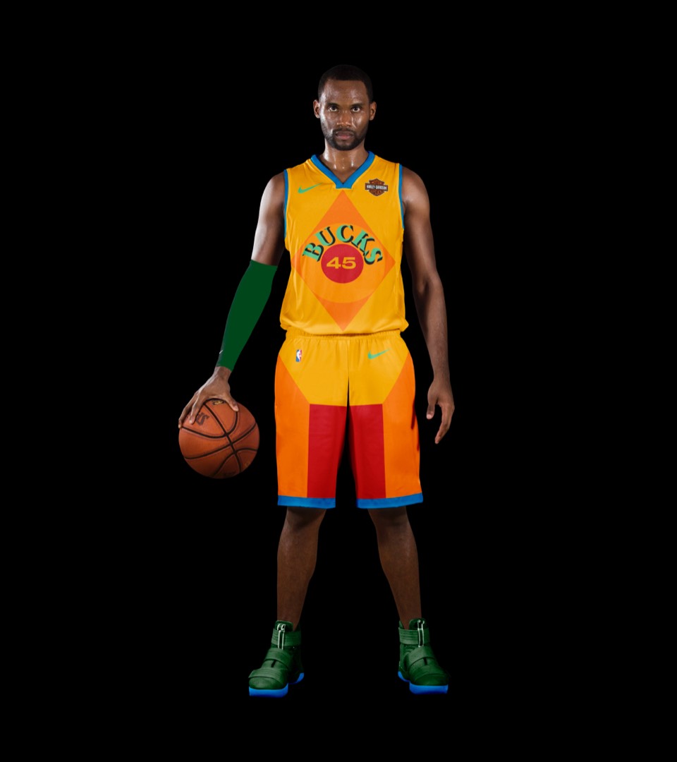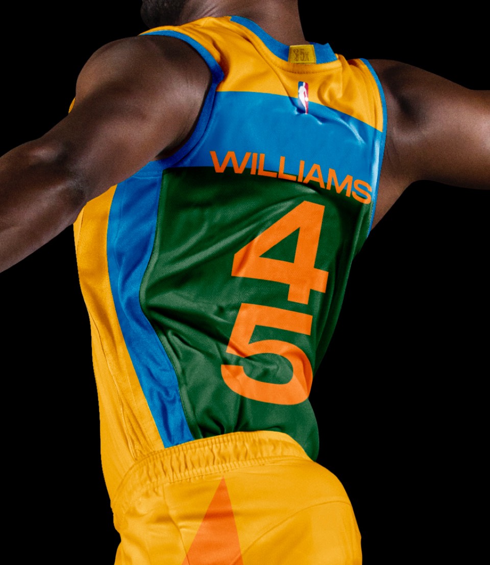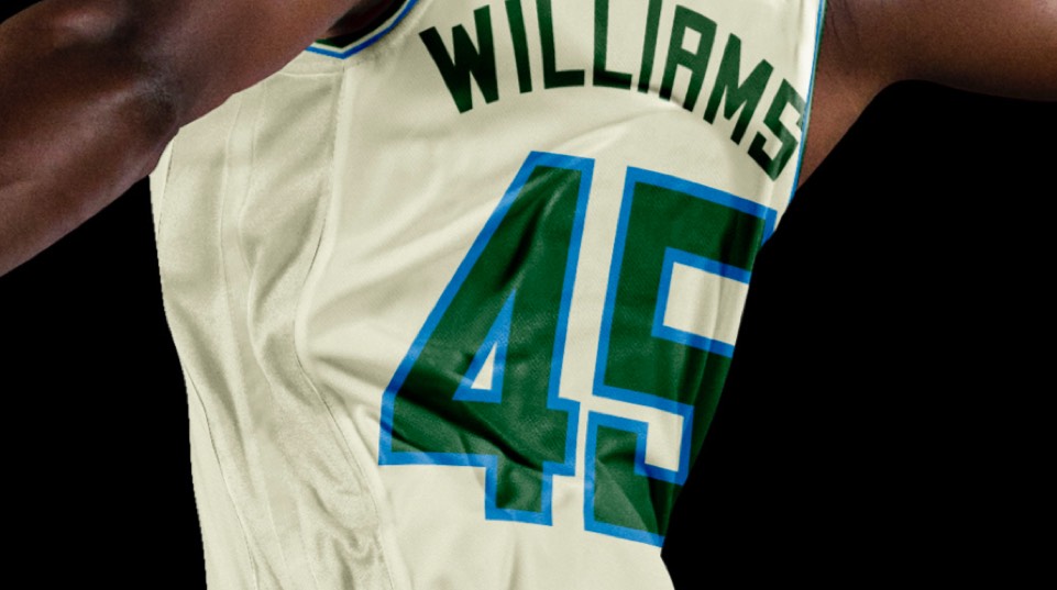 The Robert Indiana MECCA floor is on our Mount Rushmore of NBA design pieces for sure. The Bucks have smartly capitalized on this in the past, but the execution was a little too asymmetrical and didn't fully capture the vibe for us. We took another run at it, making sure to include the MECCA lettering and looking at a more symmetrical front, that wraps around to a very experimental back number layout as if the edges of the court have converged on each other. We would kill to see this uniform get produced.
