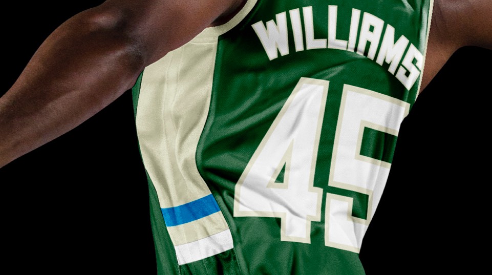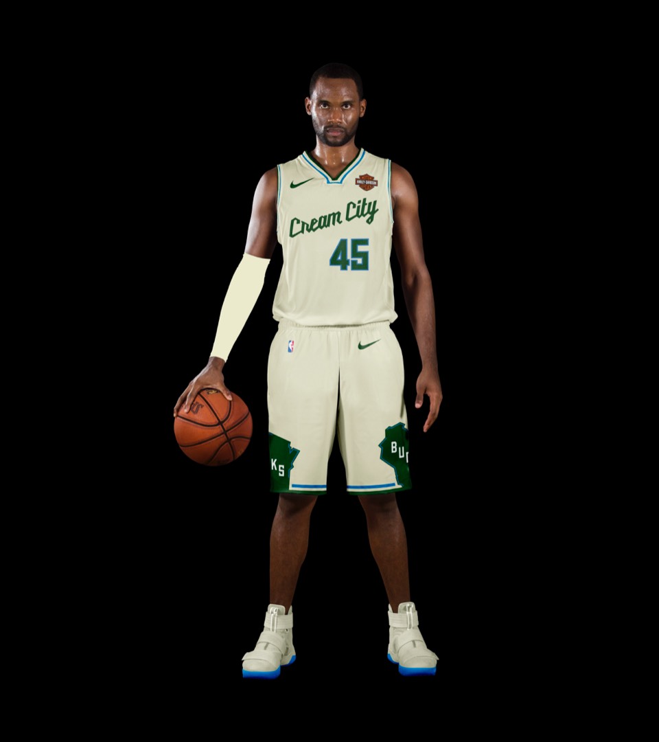 Cream city is a very cool take on the jersey, love the script rendition of their brand typeface. Only tweak we made was to add a nice big Wisconsin logo on the shorts.