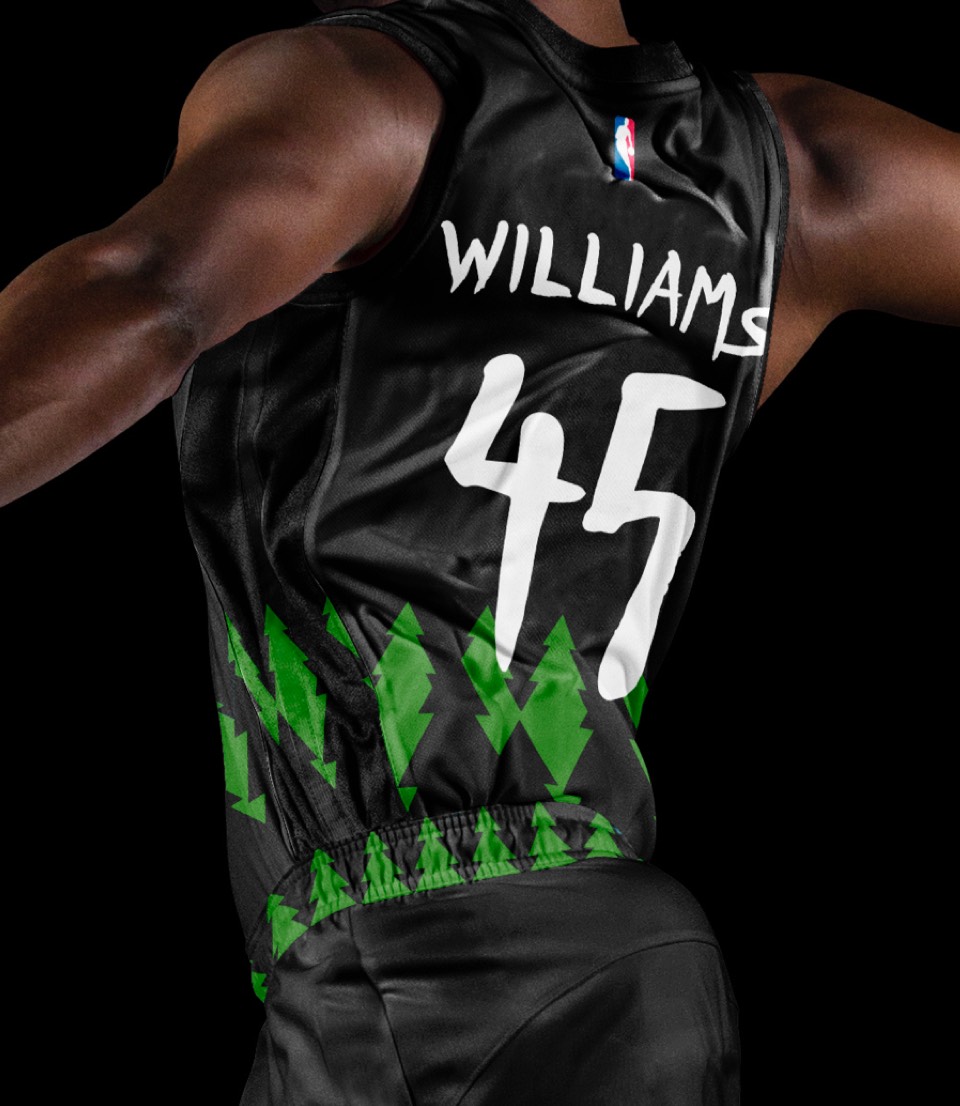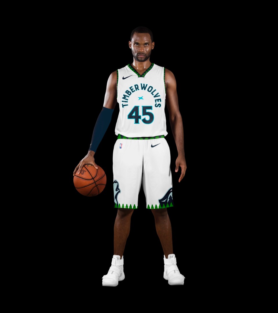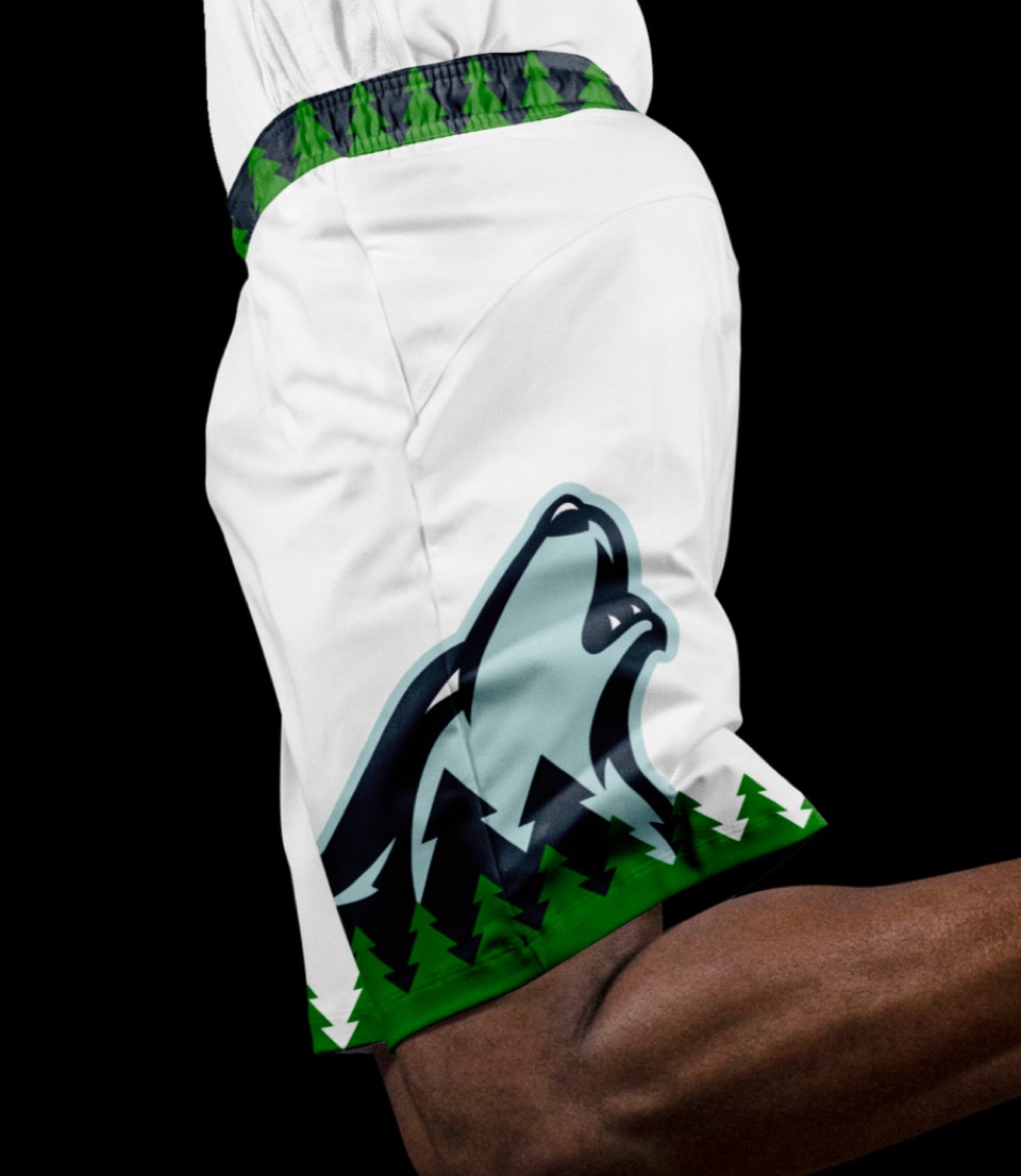 The "Full Moon" uniform, a nod to some of the more experimental 90's era kits featuring our Timberwolf as the main character spanning the width of the entire jersey, and rounding it out with hand-drawn (hand-clawed?) type and a large tree motif on the shorts.