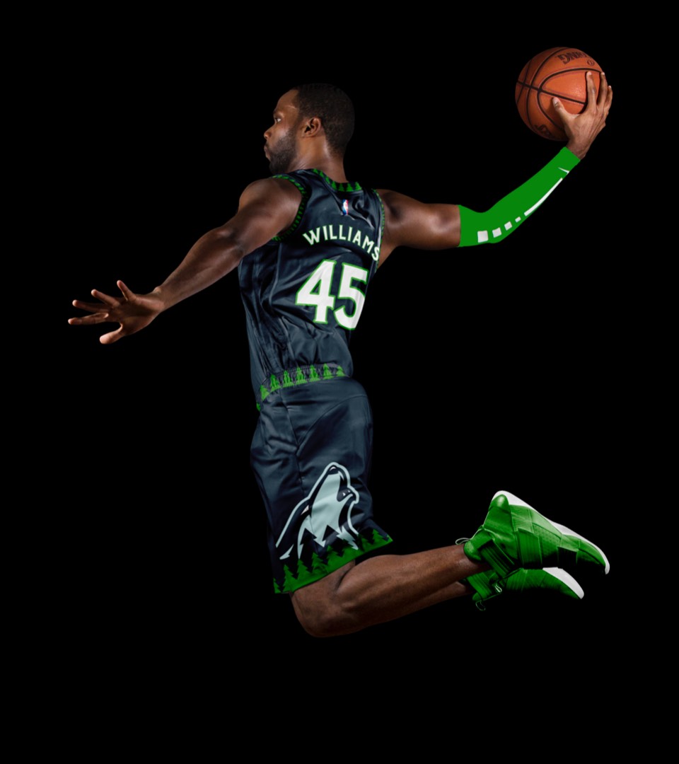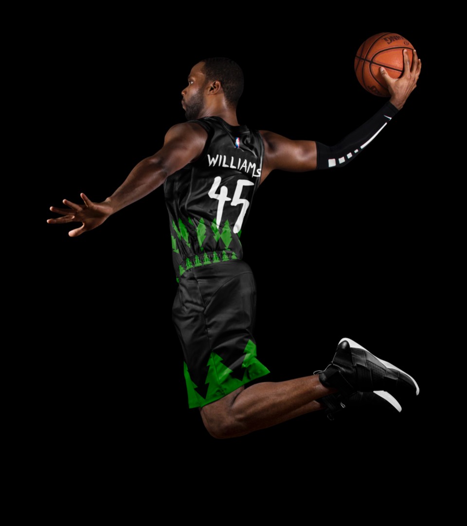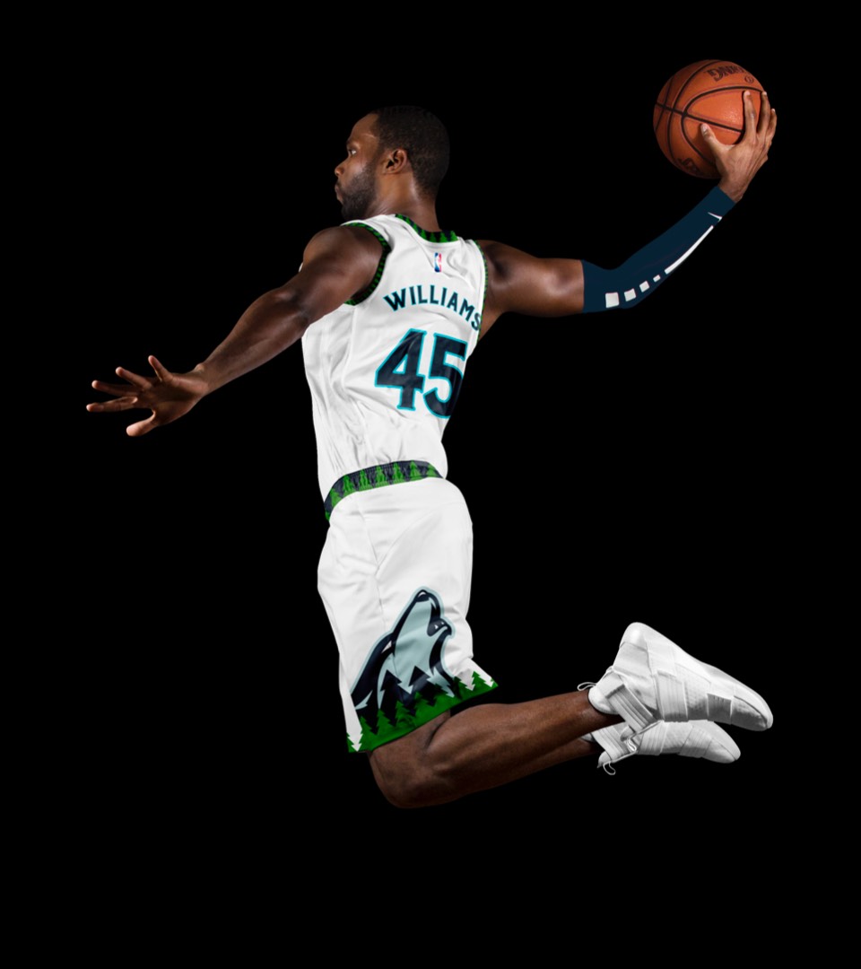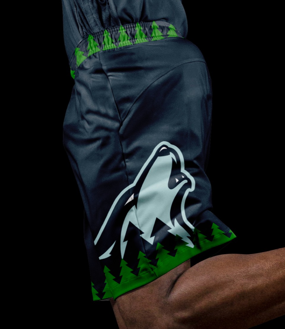 The "Full Moon" uniform, a nod to some of the more experimental 90's era kits featuring our Timberwolf as the main character spanning the width of the entire jersey, and rounding it out with hand-drawn (hand-clawed?) type and a large tree motif on the shorts.