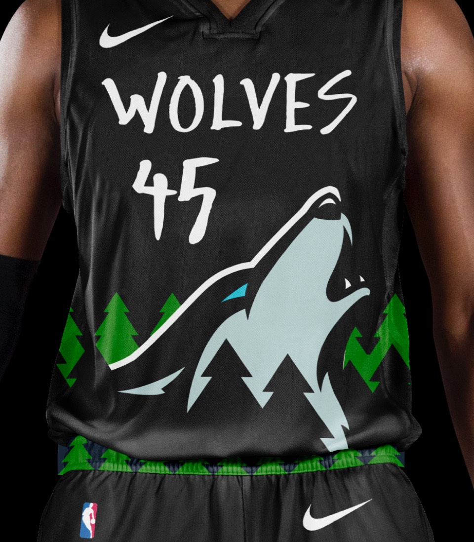 Captures the spirit of the wolf perfectly, the North Star is a great shout-out to the state motto, and other storytelling details abound around the northern lights and even some deep cuts about vikings(!). For all that, they've missed the forest for the trees, literally: we have a team called the Timberwolves without a single representation of a tree in their look and feel!