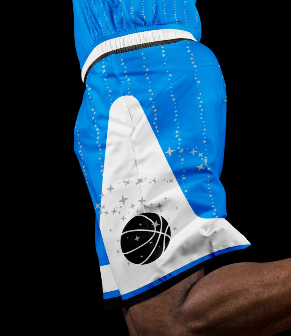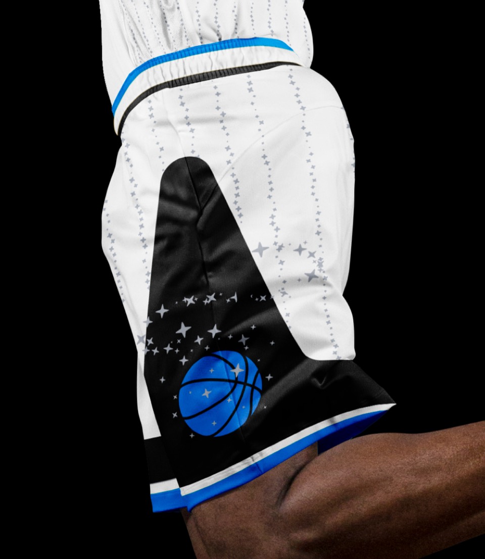 The type update and going back to the original color approach on the jerseys gets us most of the way there, but two elements really put it over the top: the giant stars on the side of both legs housing the secondary basketball logo, and the re-introduction of pinstripes. But not just ordinary pinstripes; MAGIC pinstripes.
