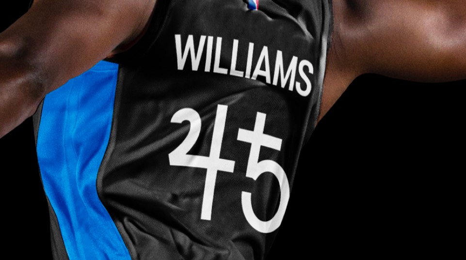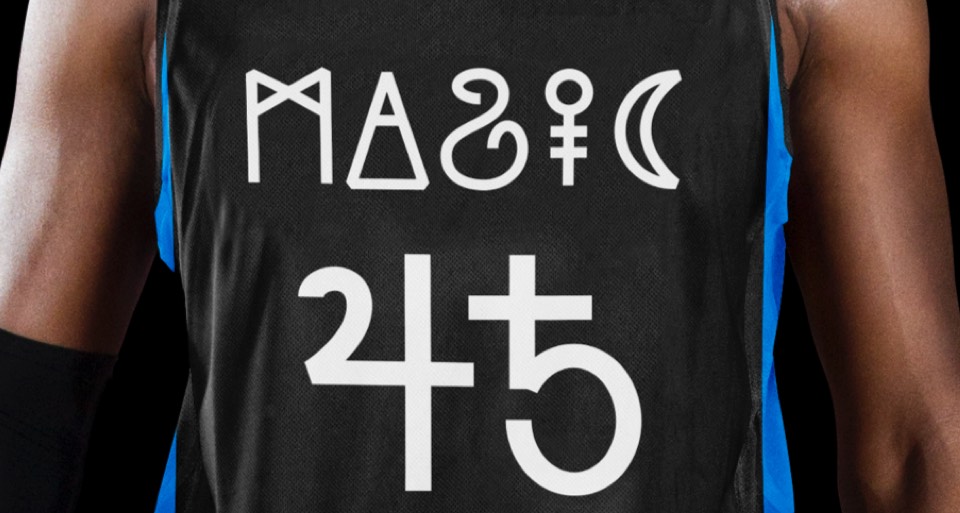 The new letter forms are more Magic-adjacent even before we add the sparkles in the A's; and the numbers in the same style feel like the grown-up (but not too stuffy) version the Shaq and Penny look.