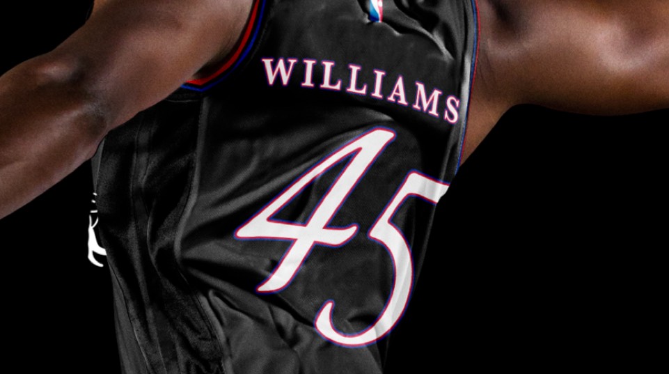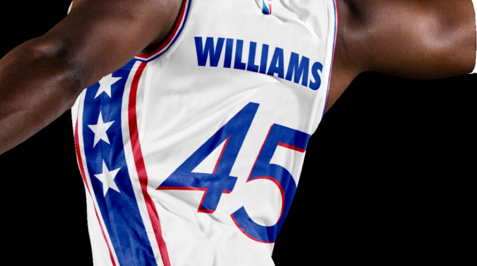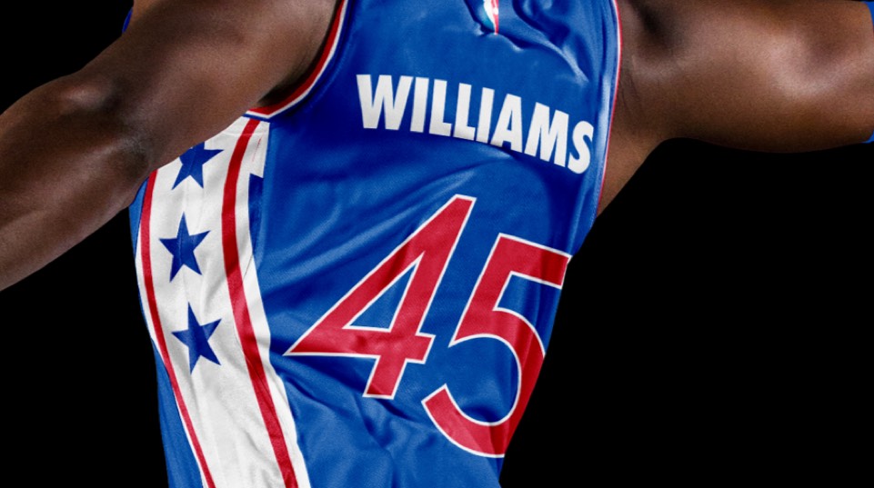 Main update here is the script Seventy Sixers. Seventy Sixers was spelled out across the uniform in the 70's and was reintroduced in 2019 Classic Edition uniforms. The goal was to match that look with the updated script font.