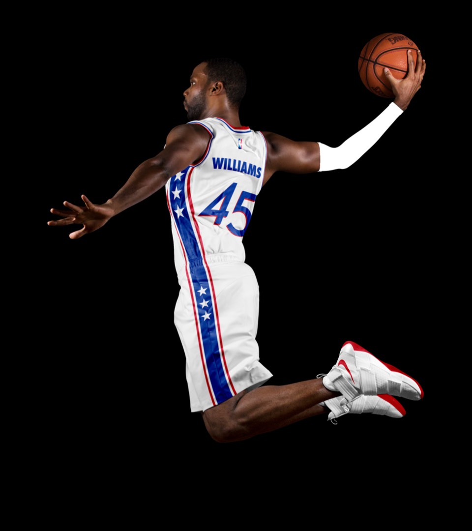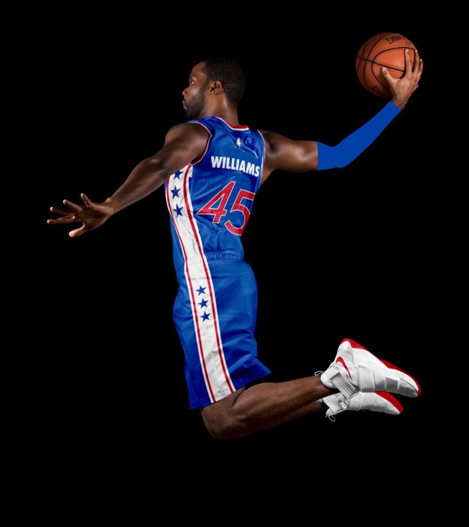 Main update here is in the updated lettering. We wanted a uniform that looks like a modernized Sixers look, but tied tightly to the classic Allen Iverson Slam Magazine cover.