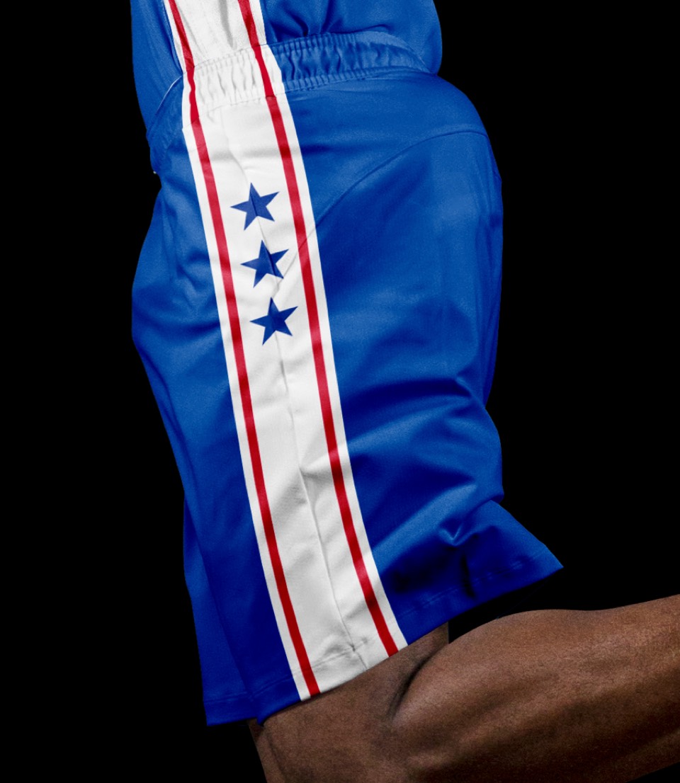 In recent years the 2000's era look has grown to have a cult like following. These do not simply go rehash that era. Instead, we've repurposed the 76ers logo from that same era over a red uniform. The modernized Nationals logo comes into play here and sits nicely on the side of the shorts and under the number on the front of the jersey.