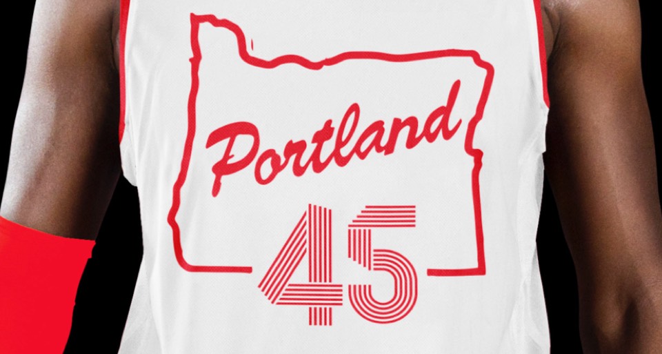 If you can believe it, we had finished this representation of the iconic PORTLAND sign before this years city jersey's came out! As with the Celtics, great minds think alike. Our take includes the Oregon silhouette and a simple piping line down the shorts.